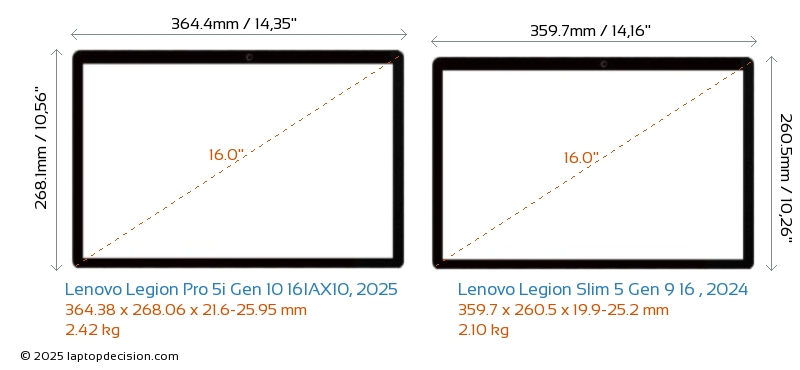 Wifi Legion Pro 5i Gen 10 16IAX10, 2025 features a more advanced Wi-Fi standard v7, providing faster and more reliable wireless connections compared to Legion Slim 5 Gen 9 16 , 2024 (v6E).