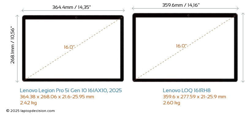 USBBoth Legion Pro 5i Gen 10 16IAX10, 2025 and LOQ 16IRH8 feature 3x USB 3.2 USB-A ports.Both Legion Pro 5i Gen 10 16IAX10, 2025 and LOQ 16IRH8 have USB Type-C ports. Legion Pro 5i Gen 10 16IAX10, 2025 has 2x USB 4.0 USB Type-C ports, while LOQ 16IRH8 has 1x USB 3.2 USB Type-C ports.