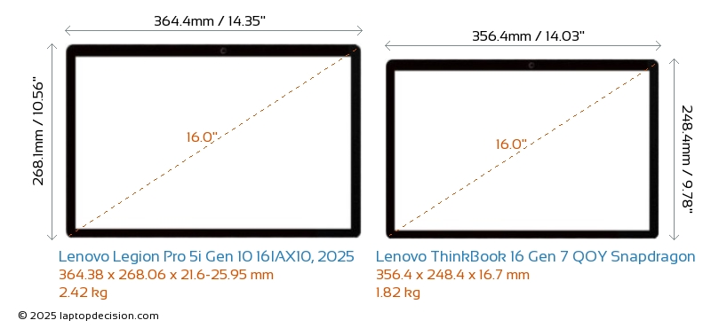 Thunderbolt Legion Pro 5i Gen 10 16IAX10, 2025 is equipped with Thunderbolt 4 port. ThinkBook 16 Gen 7 QOY Snapdragon does not have Thunderbolt port.