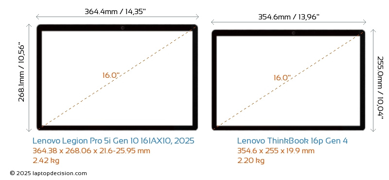 SD Card Reader ThinkBook 16p Gen 4 is equipped with an SD Card Reader for easy access to memory cards. Legion Pro 5i Gen 10 16IAX10, 2025 does not have an SD Card Reader.