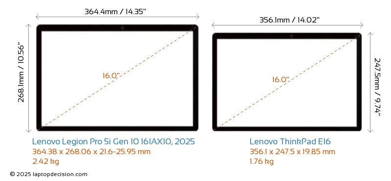 ThunderboltBoth Legion Pro 5i Gen 10 16IAX10, 2025 and ThinkPad E16 are equipped with Thunderbolt 4 ports.