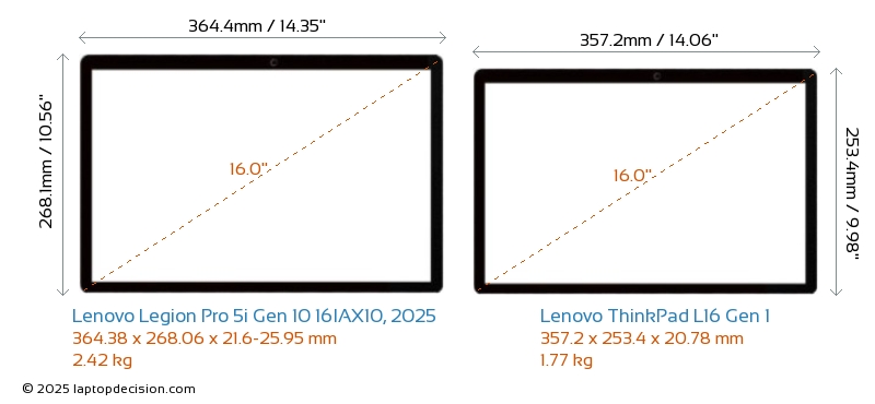 Thunderbolt Legion Pro 5i Gen 10 16IAX10, 2025 is equipped with Thunderbolt 4 port. ThinkPad L16 Gen 1 does not have Thunderbolt port.