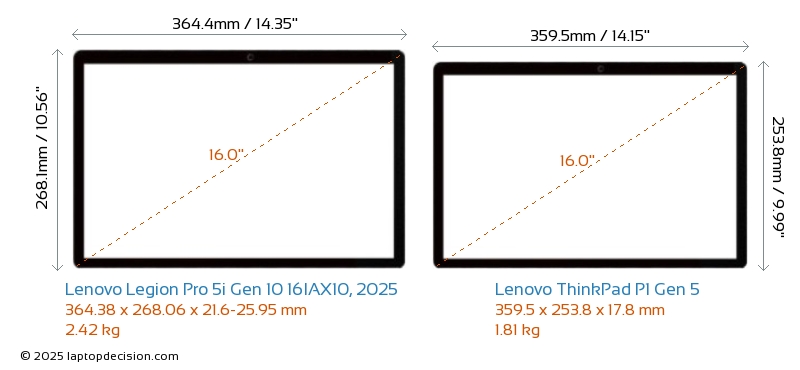 ThunderboltBoth Legion Pro 5i Gen 10 16IAX10, 2025 and ThinkPad P1 Gen 5 are equipped with Thunderbolt 4 ports.