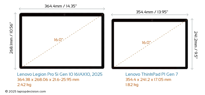 ThunderboltBoth Legion Pro 5i Gen 10 16IAX10, 2025 and ThinkPad P1 Gen 7 are equipped with Thunderbolt 4 ports.