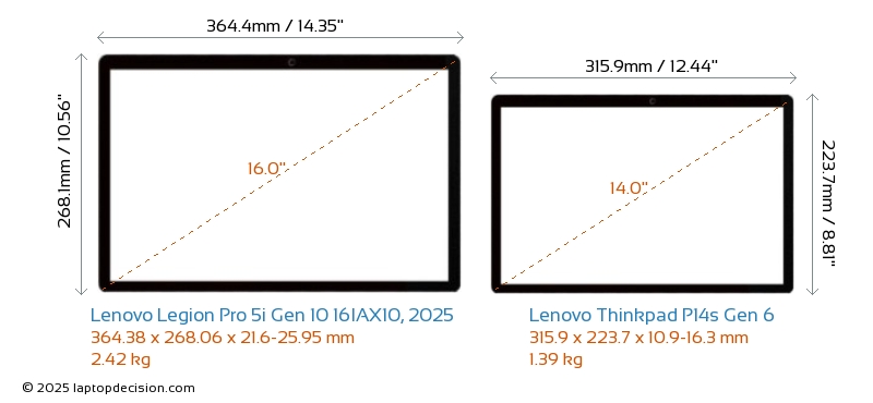 ThunderboltBoth Legion Pro 5i Gen 10 16IAX10, 2025 and Thinkpad P14s Gen 6 are equipped with Thunderbolt 4 ports.
