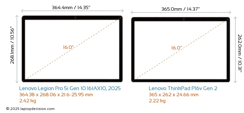 ThunderboltBoth Legion Pro 5i Gen 10 16IAX10, 2025 and ThinkPad P16v Gen 2 are equipped with Thunderbolt 4 ports.