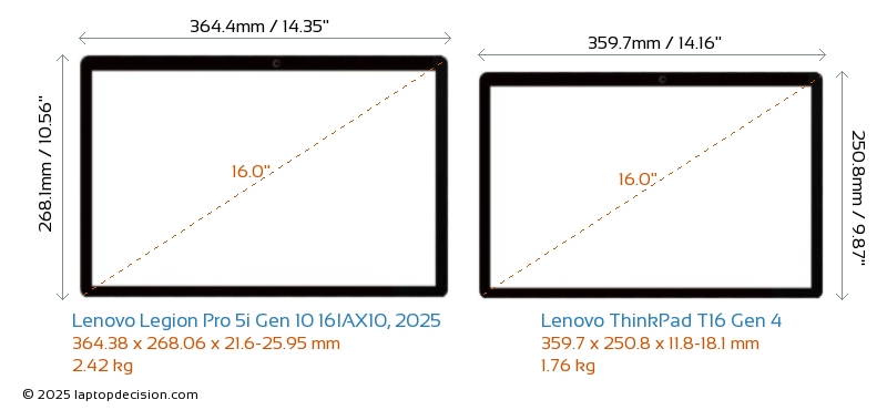 ThunderboltBoth Legion Pro 5i Gen 10 16IAX10, 2025 and ThinkPad T16 Gen 4 are equipped with Thunderbolt 4 ports.