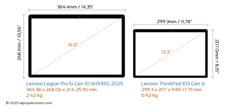 Audio JackBoth Legion Pro 5i Gen 10 16IAX10, 2025 and ThinkPad X13 Gen 6 are equipped with a 3.5mm Audio Jack, providing seamless connection to headphones and speakers.