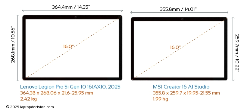 SD Card Reader Creator 16 AI Studio is equipped with an SD Card Reader for easy access to memory cards. Legion Pro 5i Gen 10 16IAX10, 2025 does not have an SD Card Reader.