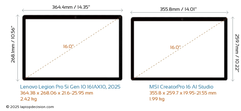 HDMIBoth Legion Pro 5i Gen 10 16IAX10, 2025 and CreatorPro 16 AI Studio feature an HDMI port (1x HDMI 2.1) for connecting to external monitors.