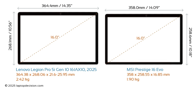 ThunderboltBoth Legion Pro 5i Gen 10 16IAX10, 2025 and Prestige 16 Evo are equipped with Thunderbolt 4 ports.
