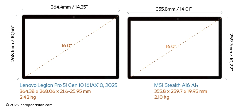 ThunderboltBoth Legion Pro 5i Gen 10 16IAX10, 2025 and Stealth A16 AI+ are equipped with Thunderbolt 4 ports.