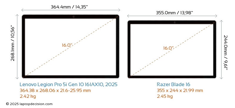 SD Card Reader Blade 16 is equipped with an SD Card Reader for easy access to memory cards. Legion Pro 5i Gen 10 16IAX10, 2025 does not have an SD Card Reader.
