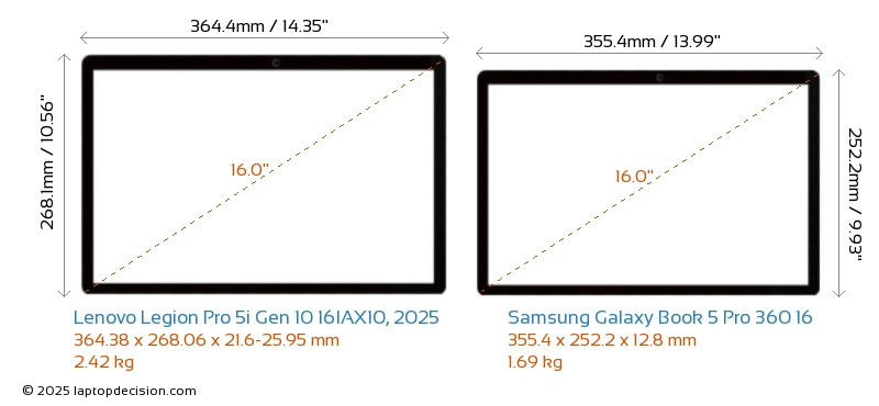 ThunderboltBoth Legion Pro 5i Gen 10 16IAX10, 2025 and Galaxy Book 5 Pro 360 16 are equipped with Thunderbolt 4 ports.