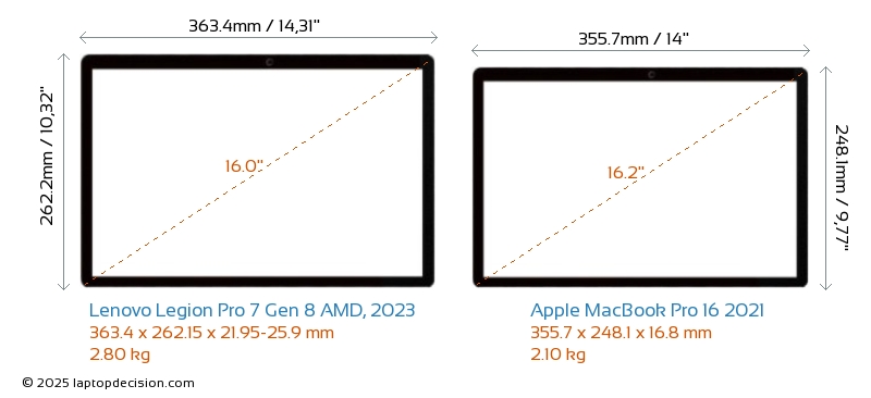 HDMIBoth Legion Pro 7 Gen 8 AMD, 2023 and MacBook Pro 16 2021 feature an HDMI port. Legion Pro 7 Gen 8 AMD, 2023 offers 1x HDMI 2.1, while MacBook Pro 16 2021 offers 1x HDMI 2.0.