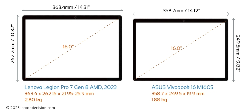 ThunderboltNeither Legion Pro 7 Gen 8 AMD, 2023 nor Vivobook 16 M1605 has Thunderbolt port.