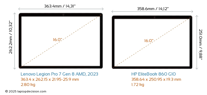 USBBoth Legion Pro 7 Gen 8 AMD, 2023 and EliteBook 860 G10 have USB-A ports. Legion Pro 7 Gen 8 AMD, 2023 has 4x USB 3.2 USB-A ports, while EliteBook 860 G10 has 2x USB 3.2 USB-A ports.Both Legion Pro 7 Gen 8 AMD, 2023 and EliteBook 860 G10 have USB Type-C ports. Legion Pro 7 Gen 8 AMD, 2023 has 2x USB 3.2 USB Type-C ports, while EliteBook 860 G10 has 2x USB 4.0 USB Type-C ports.