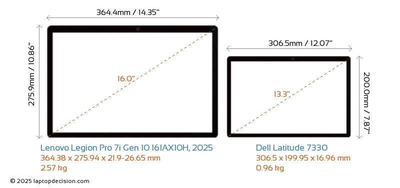 HDMIBoth Legion Pro 7i Gen 10 16IAX10H, 2025 and Latitude 7330 feature an HDMI port. Legion Pro 7i Gen 10 16IAX10H, 2025 offers 1x HDMI 2.1, while Latitude 7330 offers 1x HDMI 2.0.