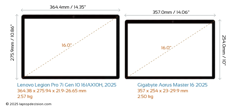 HDMIBoth Legion Pro 7i Gen 10 16IAX10H, 2025 and Aorus Master 16 2025 feature an HDMI port (1x HDMI 2.1) for connecting to external monitors.