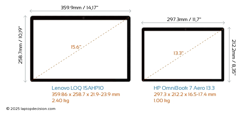 USBBoth LOQ 15AHP10 and OmniBook 7 Aero 13.3 have USB-A ports. LOQ 15AHP10 has 3x USB 3.2 USB-A ports, while OmniBook 7 Aero 13.3 has 2x USB 3.2 USB-A ports.Both LOQ 15AHP10 and OmniBook 7 Aero 13.3 have USB Type-C ports. LOQ 15AHP10 has 1x USB 3.2 USB Type-C ports, while OmniBook 7 Aero 13.3 has 2x USB 4.0 USB Type-C ports.