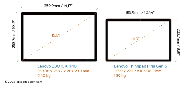 HDMIBoth LOQ 15AHP10 and Thinkpad P14s Gen 6 feature an HDMI port (1x HDMI 2.1) for connecting to external monitors.