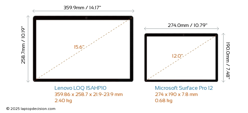 Audio Jack LOQ 15AHP10 is equipped with a 3.5mm Audio Jack, allowing seamless connection to headphones and speakers. Surface Pro 12 does not have a 3.5mm Audio Jack.