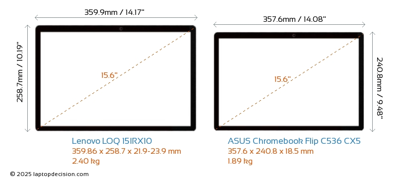 USBBoth LOQ 15IRX10 and Chromebook Flip C536 CX5 have USB-A ports. LOQ 15IRX10 has 3x USB 3.2 USB-A ports, while Chromebook Flip C536 CX5 has 1x USB 3.2 USB-A ports.Both LOQ 15IRX10 and Chromebook Flip C536 CX5 have USB Type-C ports. LOQ 15IRX10 has 1x USB 3.2 USB Type-C ports, while Chromebook Flip C536 CX5 has 2x USB 3.2 USB Type-C ports.