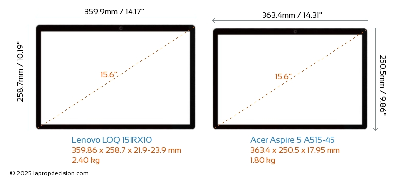 USBBoth LOQ 15IRX10 and Aspire 5 A515-45 feature 3x USB 3.2 USB-A ports.Both LOQ 15IRX10 and Aspire 5 A515-45 feature 1x USB 3.2 USB Type-C ports.