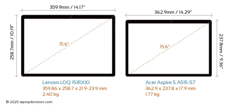 USBBoth LOQ 15IRX10 and Aspire 5 A515-57 feature 3x USB 3.2 USB-A ports.Both LOQ 15IRX10 and Aspire 5 A515-57 feature 1x USB 3.2 USB Type-C ports.