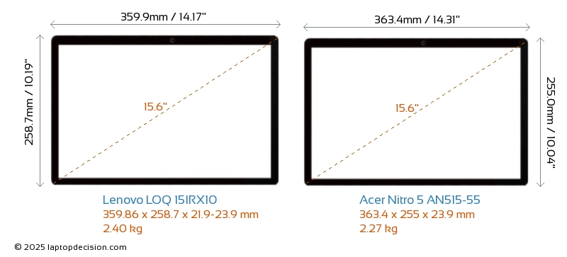 USBBoth LOQ 15IRX10 and Nitro 5 AN515-55 feature 3x USB 3.2 USB-A ports.Both LOQ 15IRX10 and Nitro 5 AN515-55 feature 1x USB 3.2 USB Type-C ports.
