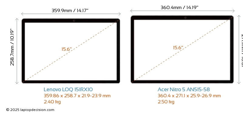 USBBoth LOQ 15IRX10 and Nitro 5 AN515-58 feature 3x USB 3.2 USB-A ports.Both LOQ 15IRX10 and Nitro 5 AN515-58 feature 1x USB 3.2 USB Type-C ports.