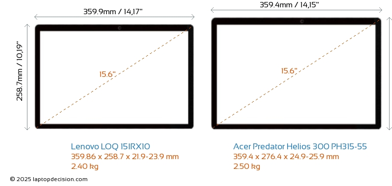 HDMIBoth LOQ 15IRX10 and Predator Helios 300 PH315-55 feature an HDMI port (1x HDMI 2.1) for connecting to external monitors.