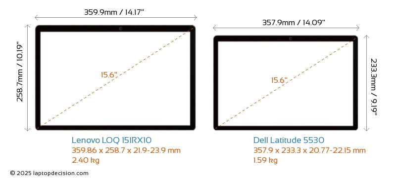 USBBoth LOQ 15IRX10 and Latitude 5530 have USB-A ports. LOQ 15IRX10 has 3x USB 3.2 USB-A ports, while Latitude 5530 has 2x USB 3.2 USB-A ports.Both LOQ 15IRX10 and Latitude 5530 have USB Type-C ports. LOQ 15IRX10 has 1x USB 3.2 USB Type-C ports, while Latitude 5530 has 2x USB 3.2 USB Type-C ports.