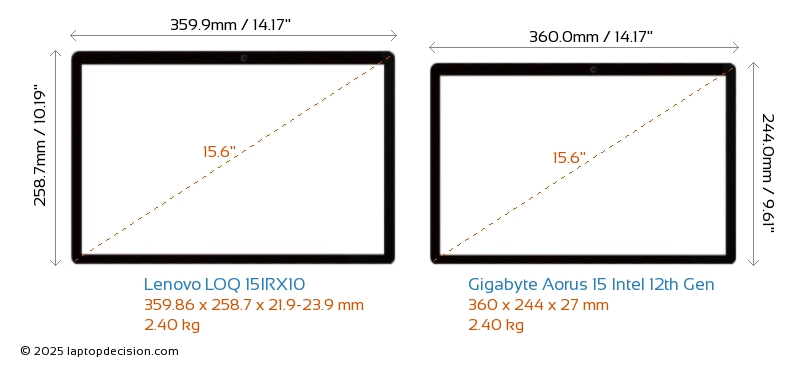 ThunderboltAorus 15 Intel 12th Gen is equipped with Thunderbolt 4 port. LOQ 15IRX10 does not have Thunderbolt port.