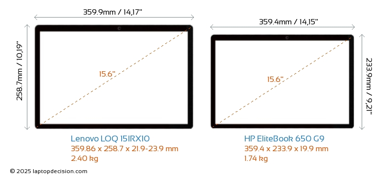 ThunderboltEliteBook 650 G9 is equipped with Thunderbolt 4 port. LOQ 15IRX10 does not have Thunderbolt port.
