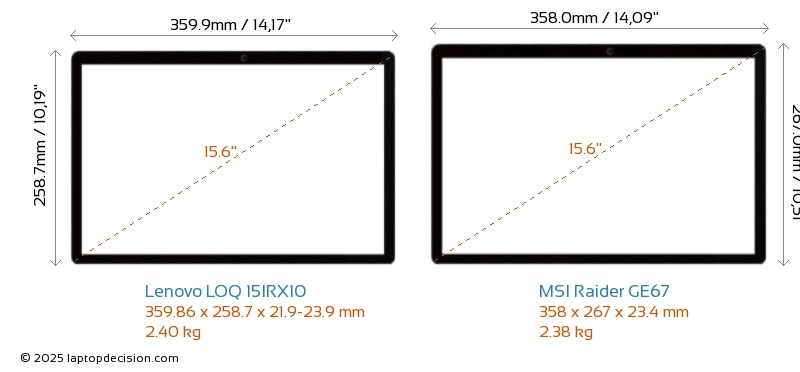 HDMIBoth LOQ 15IRX10 and Raider GE67 feature an HDMI port (1x HDMI 2.1) for connecting to external monitors.