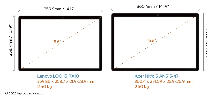 HDMIBoth LOQ 15IRX10 and Nitro 5 AN515-47 feature an HDMI port (1x HDMI 2.1) for connecting to external monitors.