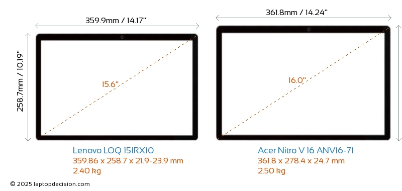 HDMIBoth LOQ 15IRX10 and Nitro V 16 ANV16-71 feature an HDMI port (1x HDMI 2.1) for connecting to external monitors.