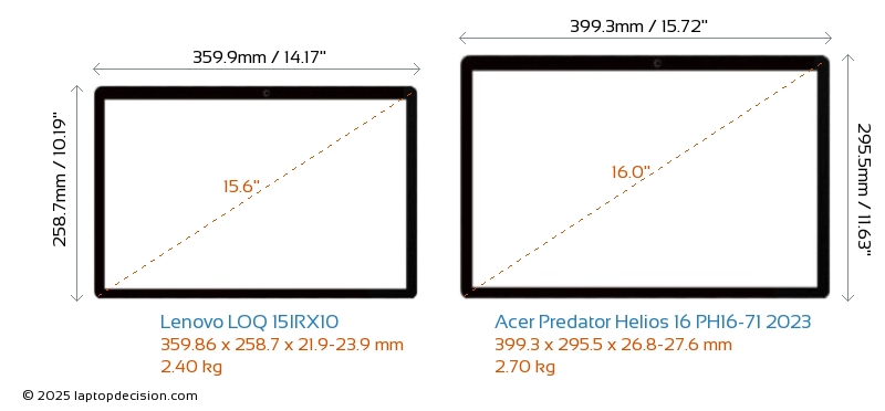 USBBoth LOQ 15IRX10 and Predator Helios 16 PH16-71 2023 feature 3x USB 3.2 USB-A ports.Both LOQ 15IRX10 and Predator Helios 16 PH16-71 2023 have USB Type-C ports. LOQ 15IRX10 has 1x USB 3.2 USB Type-C ports, while Predator Helios 16 PH16-71 2023 has 2x USB 4.0 USB Type-C ports.