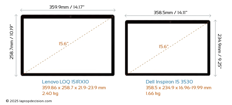 USBBoth LOQ 15IRX10 and Inspiron 15 3530 have USB-A ports. LOQ 15IRX10 has 3x USB 3.2 USB-A ports, while Inspiron 15 3530 has 2x USB 3.2 USB-A ports.Both LOQ 15IRX10 and Inspiron 15 3530 feature 1x USB 3.2 USB Type-C ports.