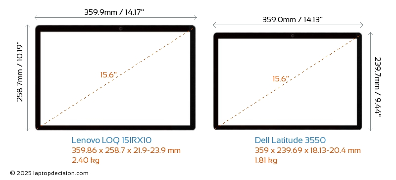 USBBoth LOQ 15IRX10 and Latitude 3550 feature 3x USB 3.2 USB-A ports.Both LOQ 15IRX10 and Latitude 3550 feature 1x USB 3.2 USB Type-C ports.