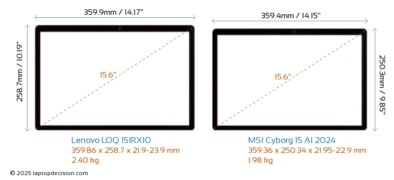 ThunderboltNeither LOQ 15IRX10 nor Cyborg 15 AI 2024 has Thunderbolt port.
