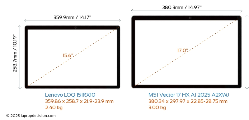 Thunderbolt Vector 17 HX AI 2025 A2XWJ is equipped with Thunderbolt 5 port. LOQ 15IRX10 does not have Thunderbolt port.