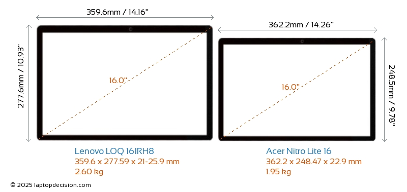 HDMIBoth LOQ 16IRH8 and Nitro Lite 16 feature an HDMI port (1x HDMI 2.1) for connecting to external monitors.