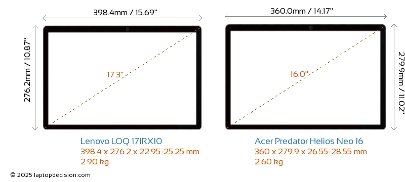 HDMIBoth LOQ 17IRX10 and Predator Helios Neo 16 feature an HDMI port (1x HDMI 2.1) for connecting to external monitors.