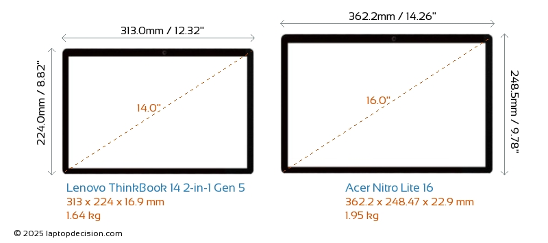 HDMIBoth ThinkBook 14 2-in-1 Gen 5 and Nitro Lite 16 feature an HDMI port (1x HDMI 2.1) for connecting to external monitors.