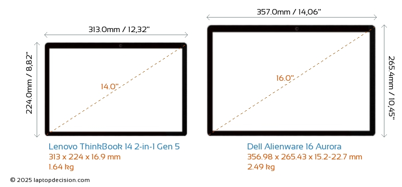 USBBoth ThinkBook 14 2-in-1 Gen 5 and Alienware 16 Aurora feature 2x USB 3.2 USB-A ports.Both ThinkBook 14 2-in-1 Gen 5 and Alienware 16 Aurora feature 2x USB 4.0 USB Type-C ports.