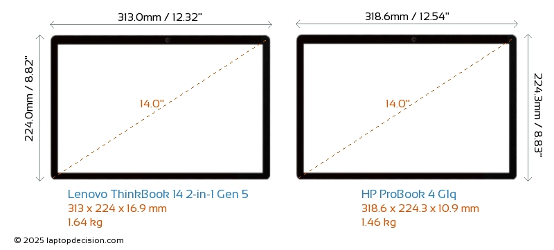 HDMIBoth ThinkBook 14 2-in-1 Gen 5 and ProBook 4 G1q feature an HDMI port (1x HDMI 2.1) for connecting to external monitors.