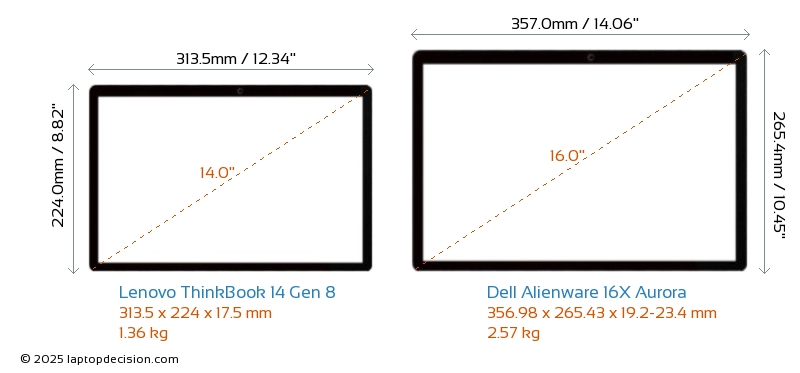 HDMIBoth ThinkBook 14 Gen 8 and Alienware 16X Aurora feature an HDMI port (1x HDMI 2.1) for connecting to external monitors.
