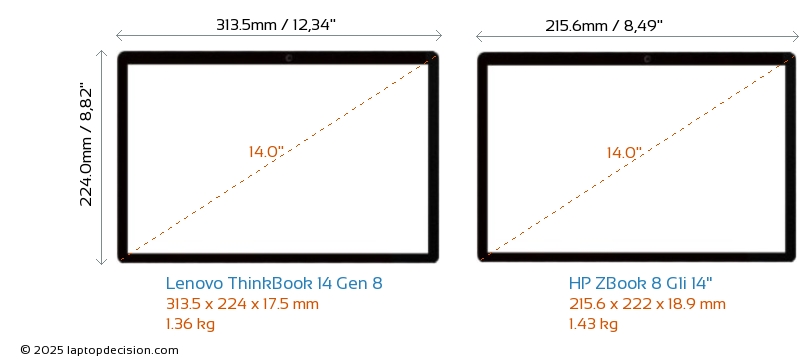 HDMIBoth ThinkBook 14 Gen 8 and ZBook 8 G1i 14" feature an HDMI port (1x HDMI 2.1) for connecting to external monitors.